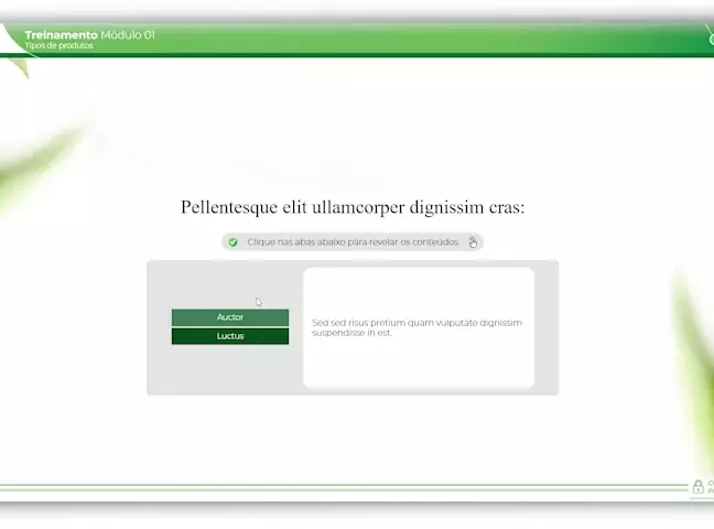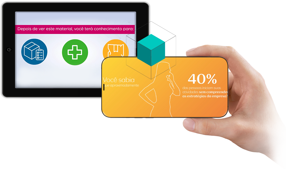 Dentro da solução proposta, desenhamos um conjunto de elementos visuais e interatividades considerando o conteúdo que você precisa ensinar em uma ordem coerente. E este conteúdo se tornará interativo.